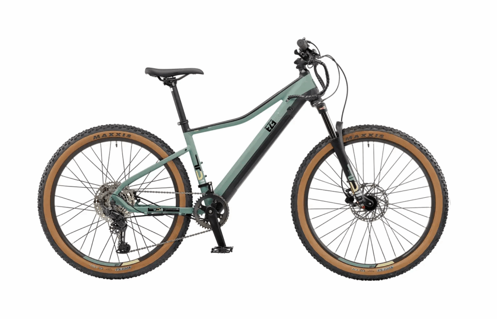 Product Features:Electric SystemMotor : 250w 36v rear hub brushless gear driveTorque : Powerful 45Nm regulated to 15.5mphBattery : 504Wh (14Ah) 36v internal with LG / Samsung cellsController : 540Wh (15Ah) 36v with throttle cable optionSensor : 12 magnetic point speed sensorDisplay : 5 mode LCD module with walk assistCharger : 2Ah 36v smart charger – 4 hours charge timeCables : Waterproof IP67 with quick connectorsFrameset :Frame Sizes : 15″ / 17″ / 19″Colours : Army GreenFrame : Alloy eMTB with internal routed cables & batteryFork : SR Suntour X1 Air Boost with Thru Axle and Remote LockoutBrakesBrakes : Tektro hydraulic disc brakesBrake Levers : Alloy 2 finger with safety power cut-offBrake Rotors : 180mm front & 160mm rear