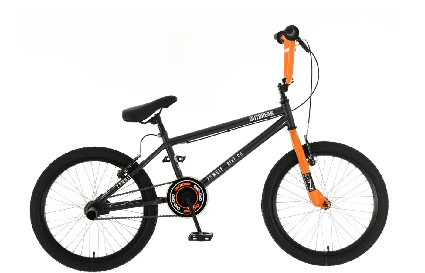 The Zombie Outbreak is perfect for first time BMX flatland riders, it is built around a tough Hi-Tensile steel frame with strong 20″ Alloy wheels and powerful V brakes, it also comes with one set of Stunt pegs making it ideal to learn the ropes and try out your first tricks. If fitted to the rear wheel ‘peg wings’ are a great first trick to master or if fitted to the front wheel try out some ‘hang 5’s’ other great tricks to master on the outbreak include Tailwhips and Bunny Hops – once you can master these nothing can stop you! . The Zombie Outbreak is suitable for age 7 to adult or an inside leg of 20 inches upwards, and has been designed in a unisex finish so truly is suitable for all.